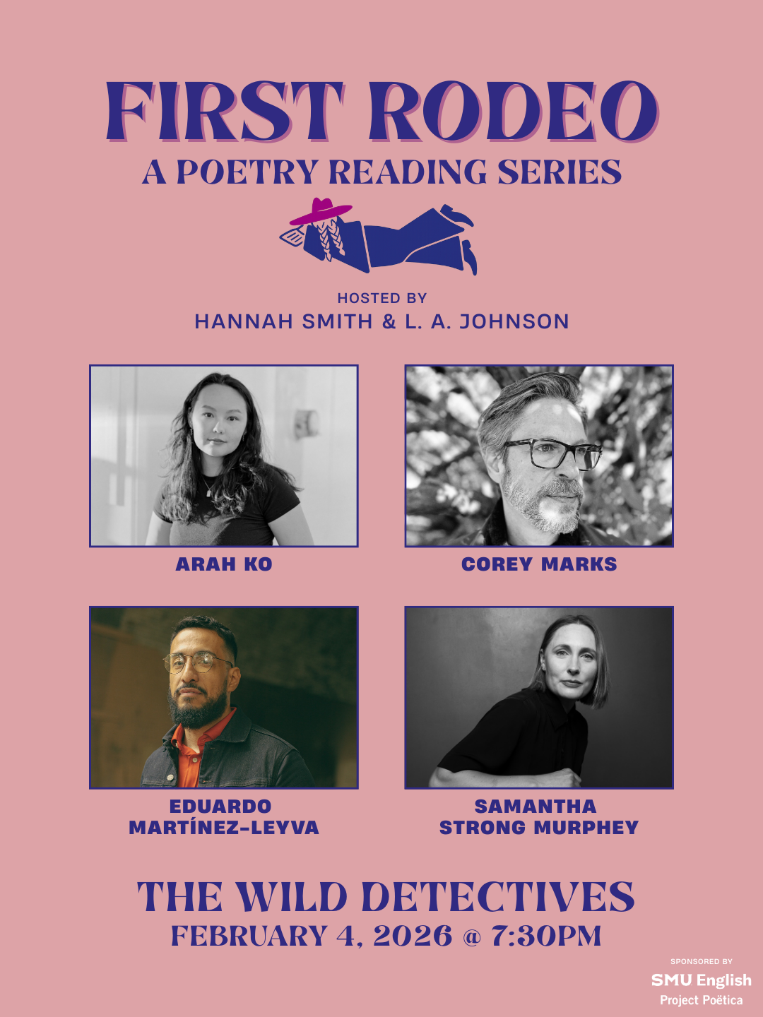 In collaboration with L. A. Johnson, I co-host First Rodeo: A Poetry Reading Series. This event is housed at The Wild Detectives and sponsored by SMU English / Project Poëtica. Our next reading will be on Wednesday, May 6th at 7:30pm.